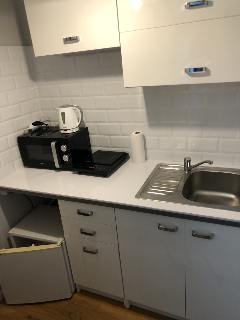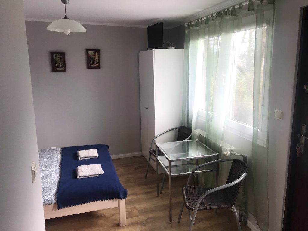 W pełni wyposażony aneks kuchenny, łazienka z kabiną prysznicową, osobne wejście.
