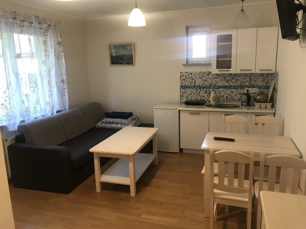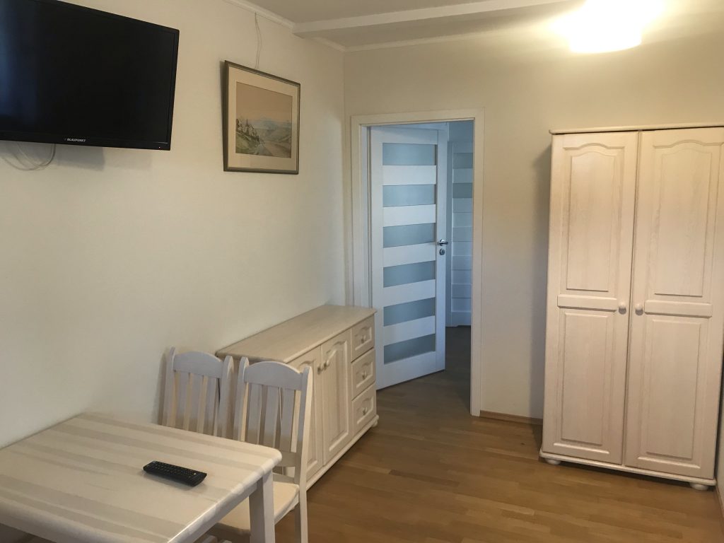 W pełni wyposażony aneks kuchenny, dwa telewizory, łazienka z kabiną prysznicową, osobne wejście.